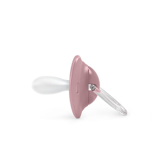 - płaska główka - pozostawia językowi wystarczająco dużo miejsca, aby przyjął on naturalną pozycję. Również dzięki elastyczności miękkiego silikonu pozwala językowi bez wysiłku odkształcać smoczek, dopasowując go do jamy ustnej.