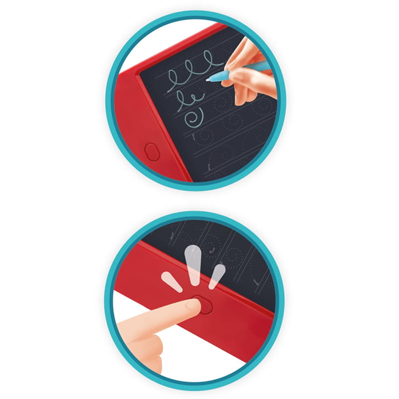 Tablet z ekranem LCD do nauki pisania dużych i małych liter alfabetu, cyfr od 0 do 9 oraz szlaczków.