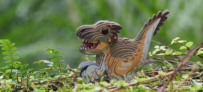 Velociraptory są znane ze swojej szybkości! W rzeczywistości ich nazwa wywodzi się od łacińskich słów „velox”, co oznacza szybki i „raptor”, co oznacza złodzieja! Niedawno odkryto, że velociraptory mają pióra, takie jak nasz Raptor EUGY! Paleontolodzy odkryli na ich skórze guzki gęsi, które wskazywały na ich podobieństwo do ptaków.