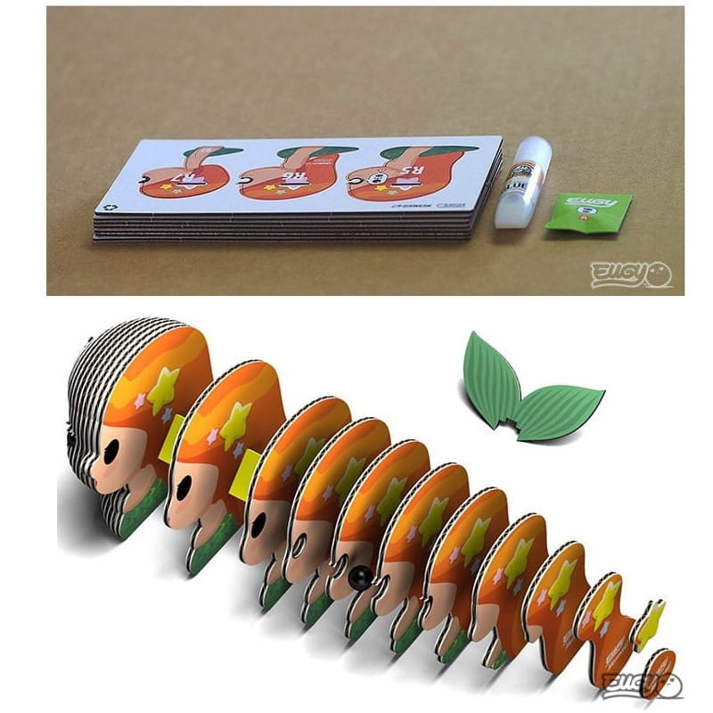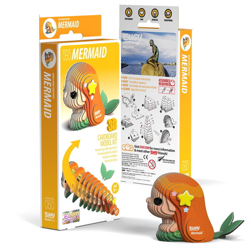 Układanki Eugy zaprojektowane w Nowej Zelandii są wykonane z przyjaznego dla środowiska kartonu pochodzącego z recyklingu i farby na bazie ryżu.