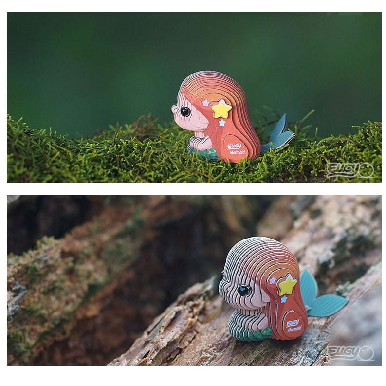 Zestaw zawiera ponumerowane elementy układanki, nietoksyczny klej oraz instrukcję do zbudowania syrenki.