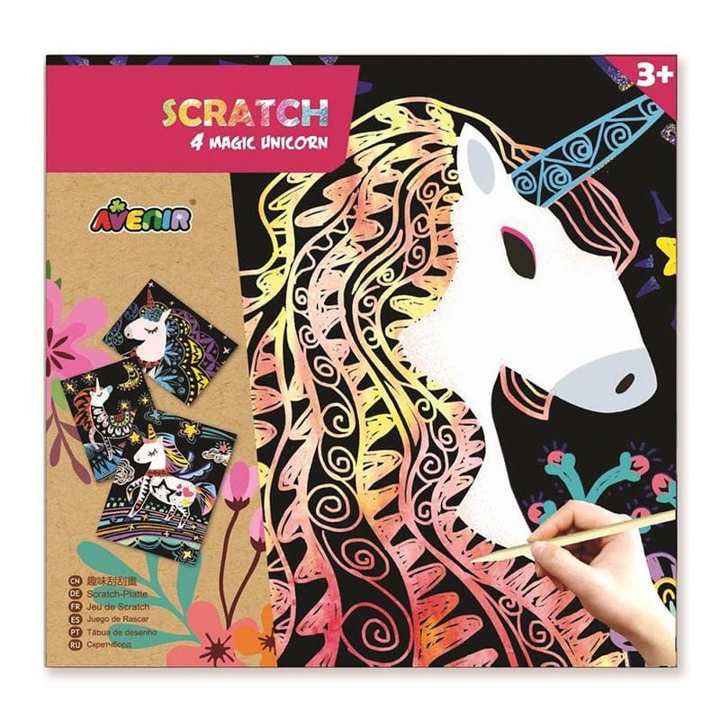 Wydrapywanki Jednorożce marki Avenir pozwalają na oryginalną kreatywna zabawę. Zdrapywanie stron specjalnym patyczkiem to nowe wrażenie dotykowe i sensoryczne. Ukazujące się w trakcie zdrapywania kolorowe obrazki dają satysfakcję, przyjemność z zabawy i ćwiczą zdolności motoryczne dziecka.