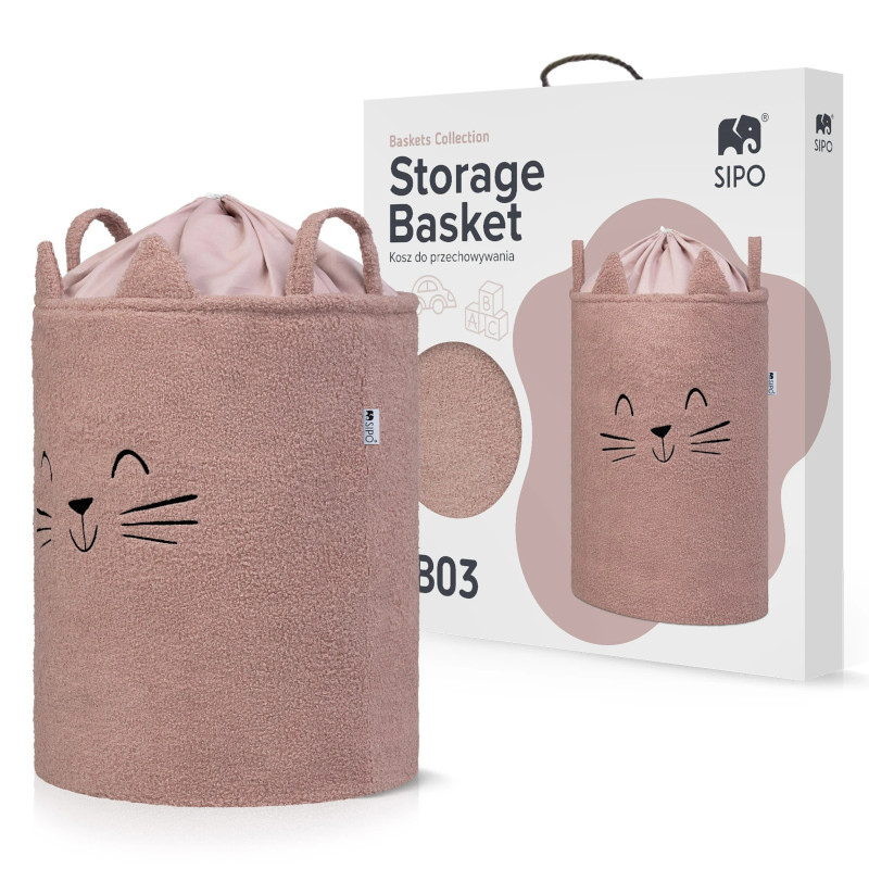 Kosz na zabawki XL Premium Boucle KOT RÓŻOWY, Sipo