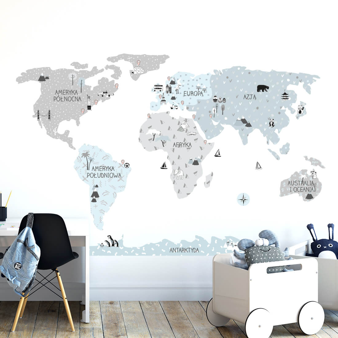 Naklejki z mapą Świata na ścianę to wyjątkowy, wyglądający pięknie na ścianie element dekoracyjny ale również i edukacyjny. Naklejka doda uroku każdemu dziecięcemu pokojowi i wpisze się w niezwykłą dziecięcą przestrzeń. Bogactwo wzorów, skandynawska kolorystyka, najwyższa jakość, dbałość o szczegóły sprawi, że wybrana naklejka wpasuje się w każde wnętrze.