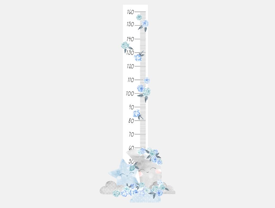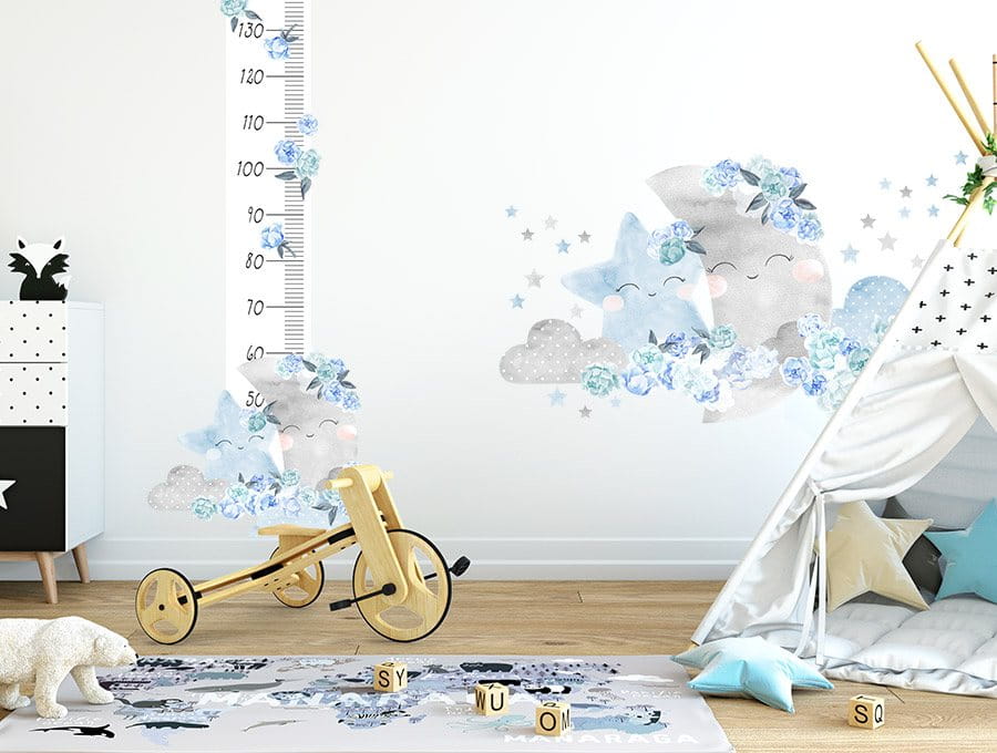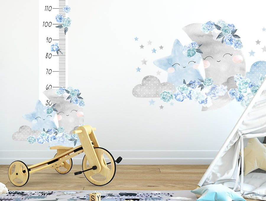 Naklejka dekoracyjna na ścianę z miarką wzrostu Księżyc Niebieski to piękna, modna i niezwykła dekoracja pokoju dla dziecka.