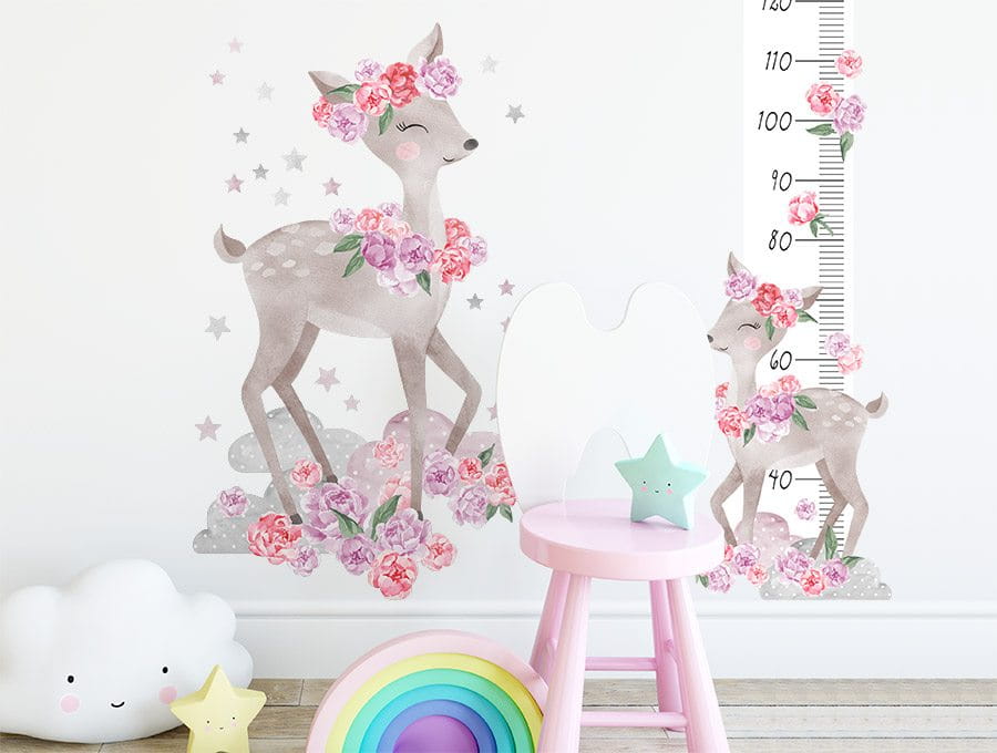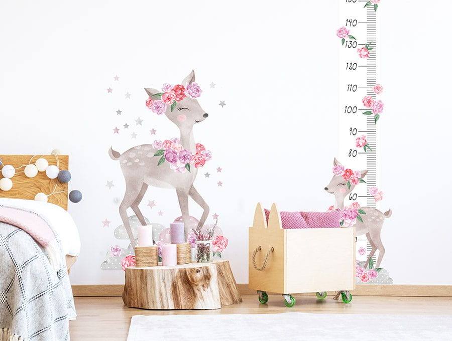 Miarka wzrostu Sarenka różowa - naklejka na ścianę, Pastelowe Love