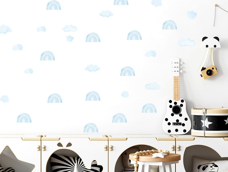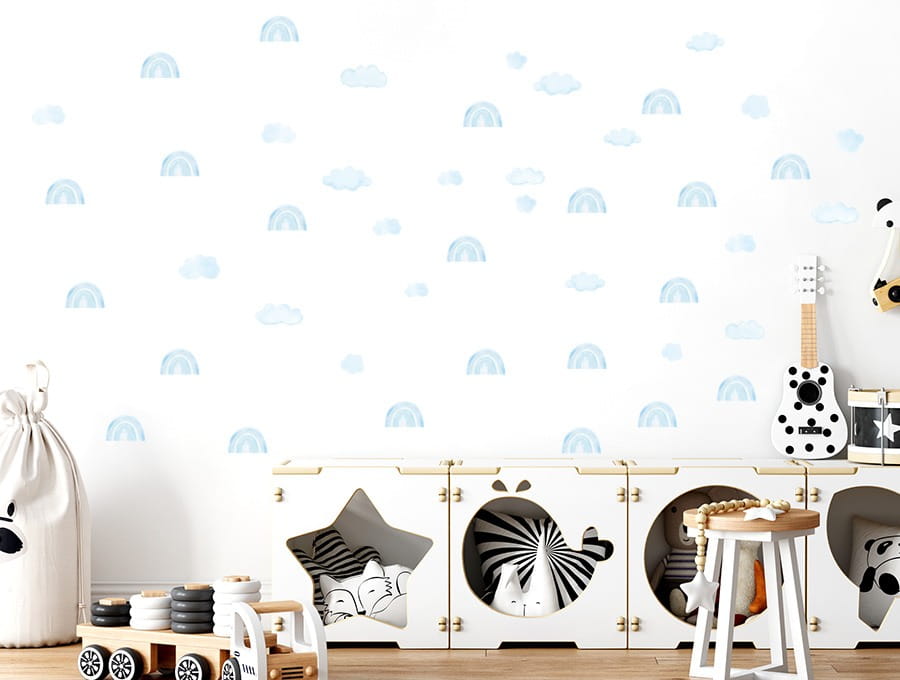 Naklejka dekoracyjna na ścianę Mini Tęcze Niebieskie to piękna, modna i niezwykła dekoracja dziecięcego pokoju od PasteloweLove