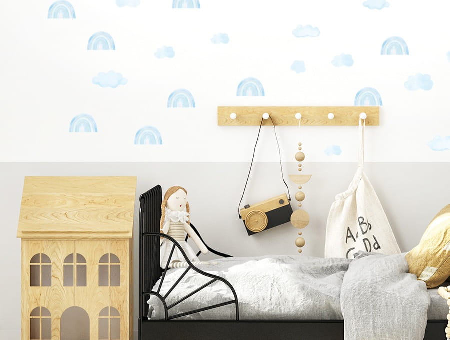 Akwarelowe tęcze będą wyglądały bajecznie w każdym dziecięcym wnętrzu, a delikatna, wręcz lekka kolorystyka sprawi, że ściany nabiorą wyjątkowego charakteru.