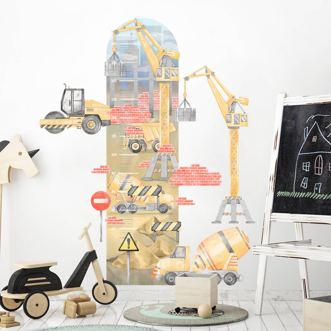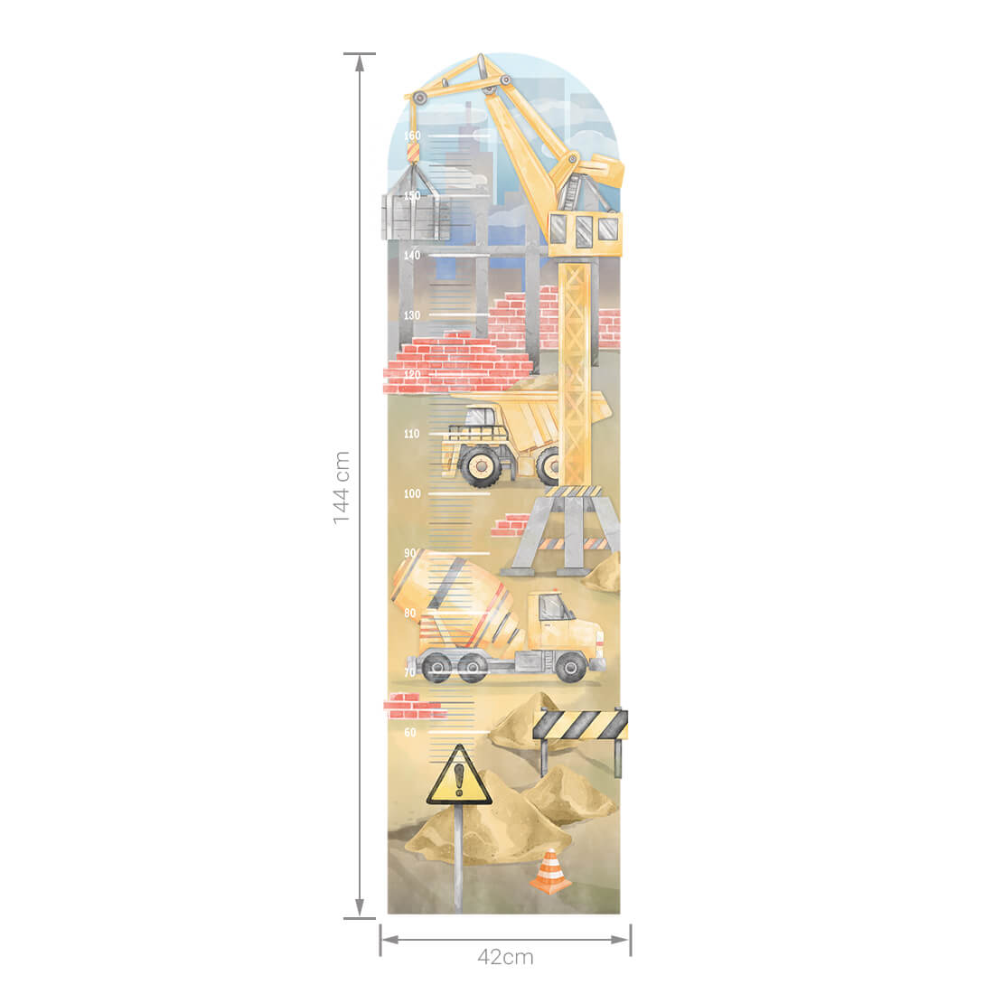 Naklejka na ścianę miarka budowa to oryginalny produkt zaprojektowany i wyprodukowany w Polsce. Wydrukowana jest na najwyższej jakości folii, pokryta matowym laminatem zabezpieczającym przed zarysowaniami, wykonana z największą starannością i dbałością o detale. Naklejka na ścianę nie posiada tła - wycięta jest po obrysie, co oznacza, że można przykleić ją na podłożu w dowolnym kolorze. Naklejkę przykleić można również do wszystkich innych gładkich powierzchni, takich jak meble, szyby, czy lustra.