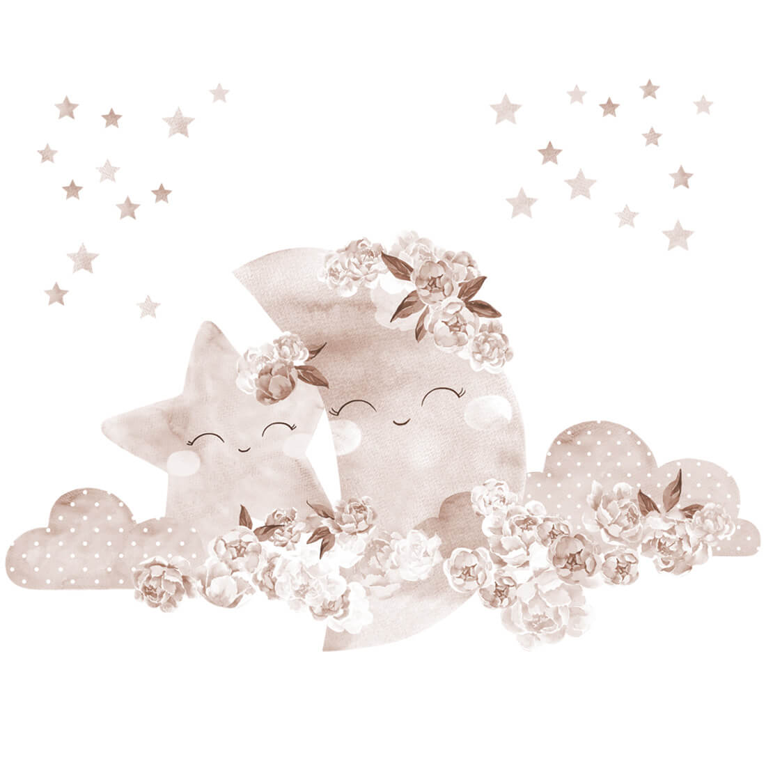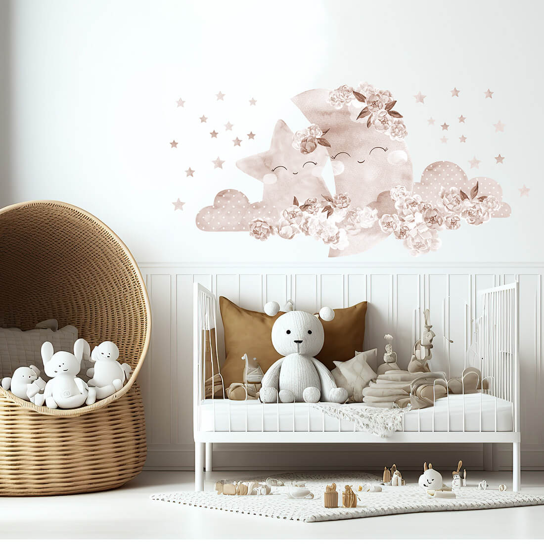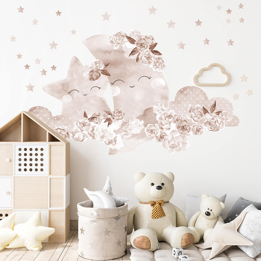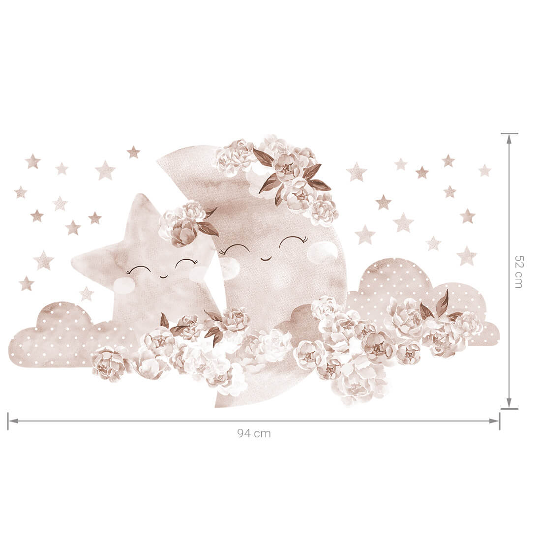 W skład zestawu wchodzą: księżyc w chmurkach (94x52 cm) oraz gwiazdki. Dokładne wymiary podane na ostatnim zdjęciu.