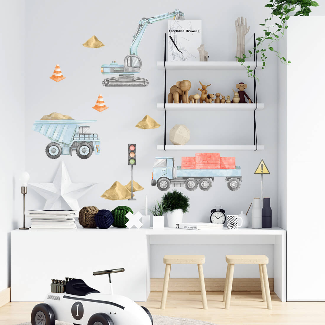 Kolekcja naklejek na ścianę budowa powstała z myślą o prawdziwych miłośnikach pojazdów budowlanych. Naklejki na ścianę z tej serii to realistyczne pojazdy prosto z placu budowy. Cała seria została zaprojektowana tak, aby idealnie ze sobą współgrała i tworzyła spójną kompozycję.
