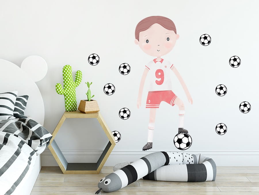 Naklejka dekoracyjna na ścianę Piłkarz Czerwony to piękna, modna i niezwykła dekoracja dziecięcego pokoju od PasteloweLove