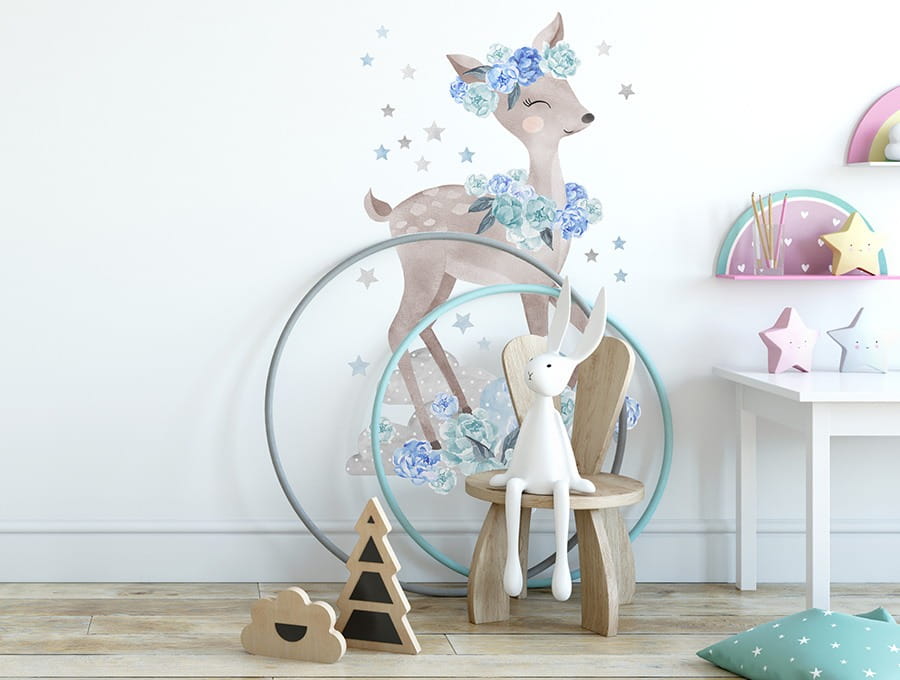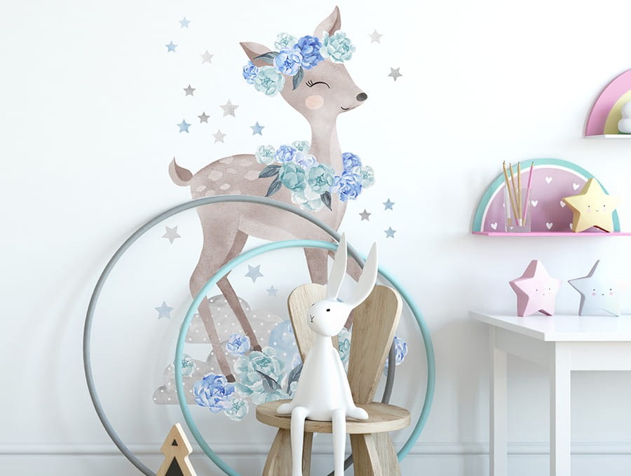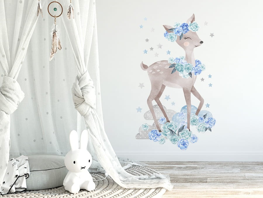 Naklejka dekoracyjna na ścianę Sarenka Niebieska to piękna, modna i niezwykła dekoracja dziecięcego pokoju od PasteloweLove.