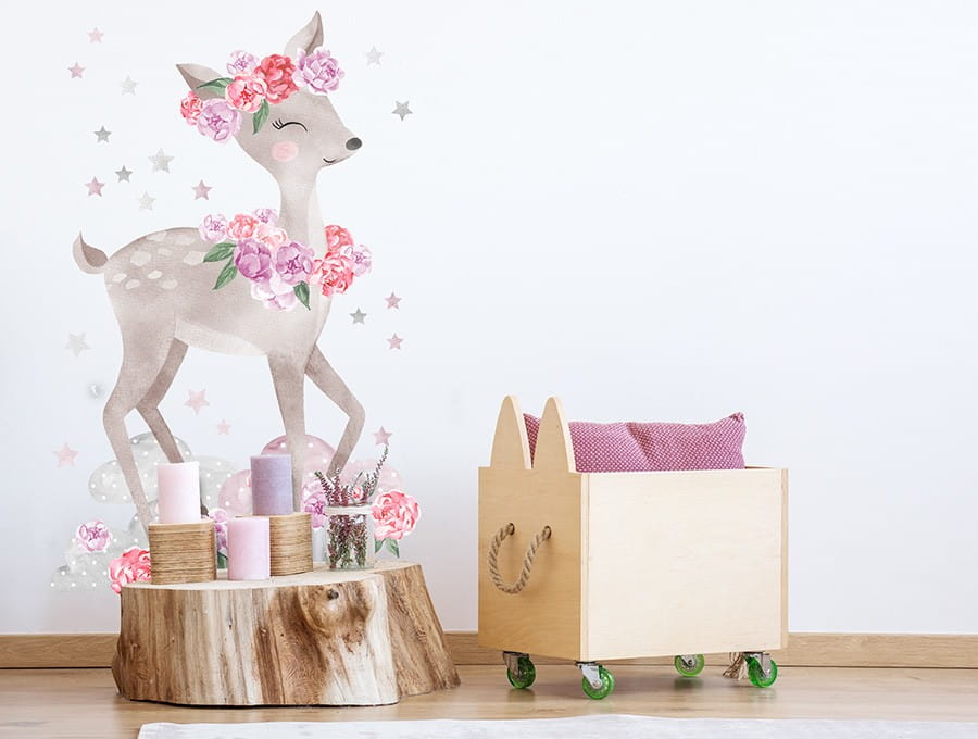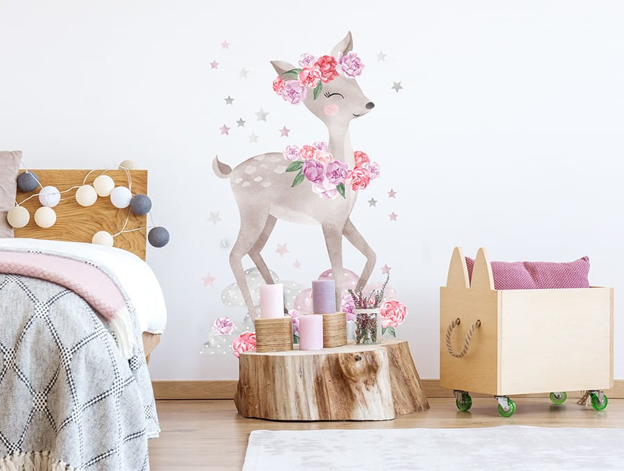 Naklejki ścienne z sarenką to wyjątkowy, wyglądający pięknie na ścianie element dekoracyjny, który niezwykle doda uroku każdemu dziecięcemu pokojowi i wpisze się w niezwykłą dziecięcą przestrzeń. Bogactwo wzorów, skandynawska kolorystyka, najwyższa jakość, dbałość o szczegóły sprawi, że wybrana naklejka wpasuje się w każde wnętrze.