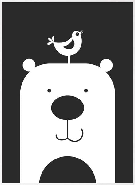 czarno-biały plakat Misio i Ptaszek w formacie A3.