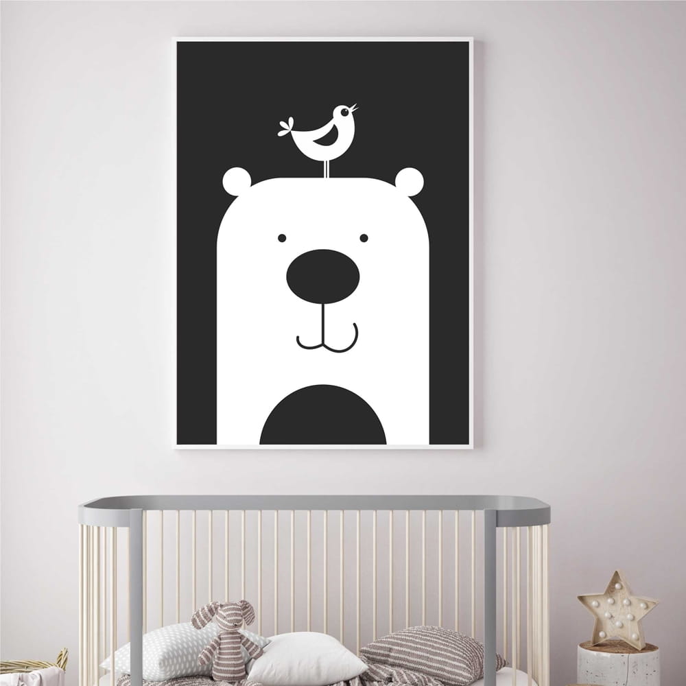 Czarno-biały plakat Misio i Ptaszek w formacie A3.