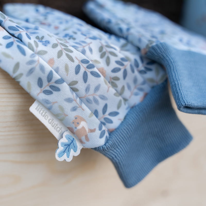 Rękawiczki są ozdobione nadrukiem i kolorami z kolekcji Forest Friends, wykończone uroczą metką w kształcie listka.
