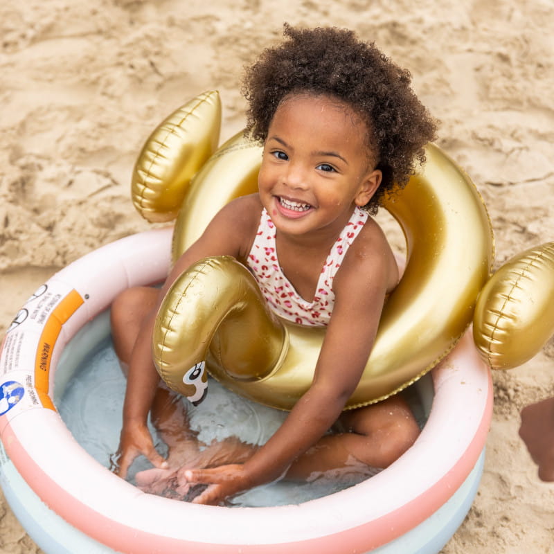 Dmuchany Złoty Łabędź to koło przeznaczone dla dzieci od 3-go roku życia. Dzięki niemu Twoje dziecko może czuć się bezpiecznie podczas zabaw w basenie, nad jeziorem lub nad morzem. Idealny do nauki pływania.