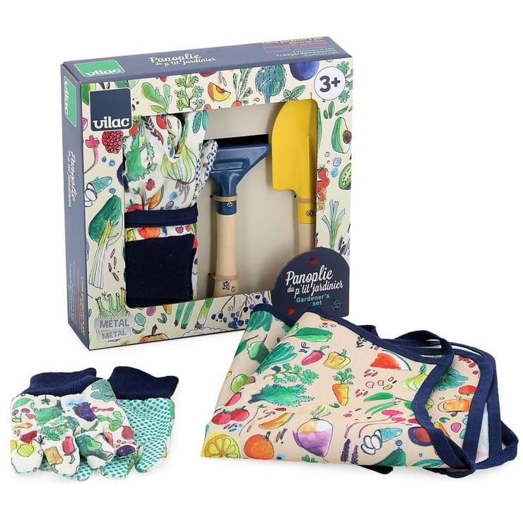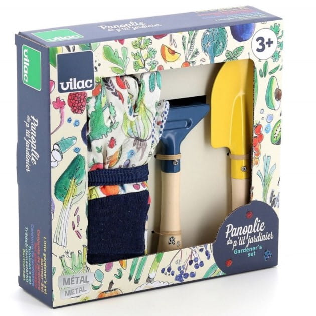 Piękny zestaw narzędzi do ogrodu dla dzieci marki Vilac.