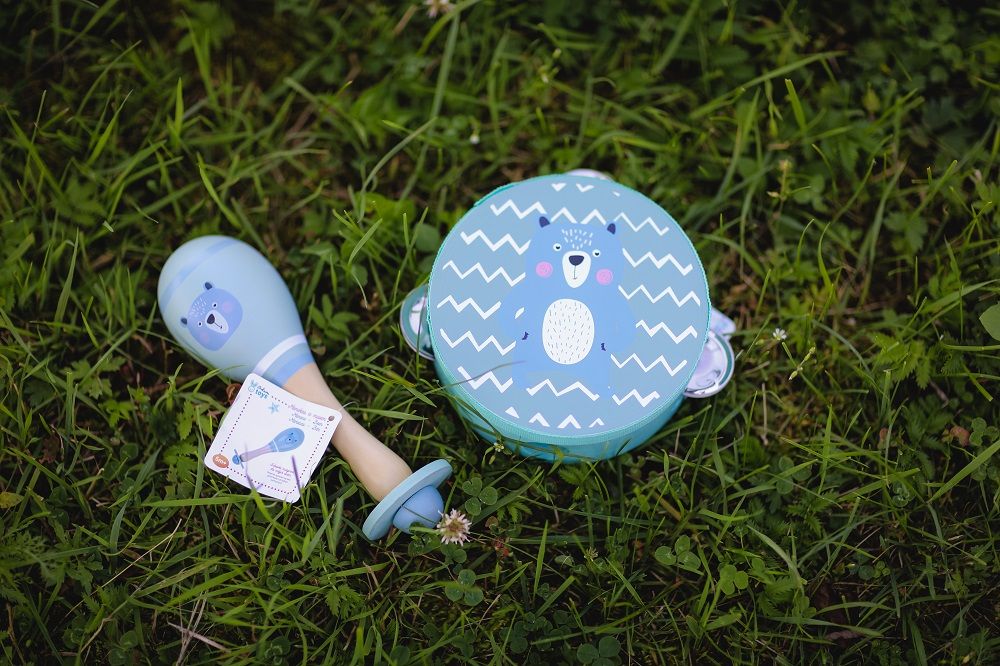 Drewniany tamburyn dla dzieci z misiem od marki Adam Toys
