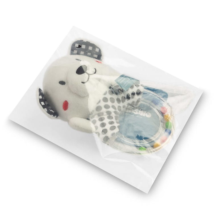 Grzechotka dla niemowląt w kontrastujących odcieniach czerni i bieli została stworzona z myślą o stymulacji wzroku i rozwoju sensorycznym maluszka.