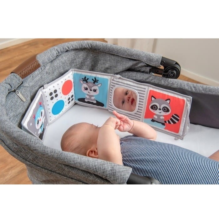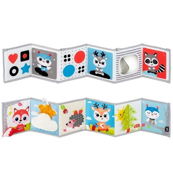 Dwuetapowa kolorowa książeczka stymuluje widzenie w pierwszych dniach życia, zachęca do leżenia z niej na brzuszku oraz w dalszych etapach rozwija motorykę małą, zmysł dotyku, słuchu.