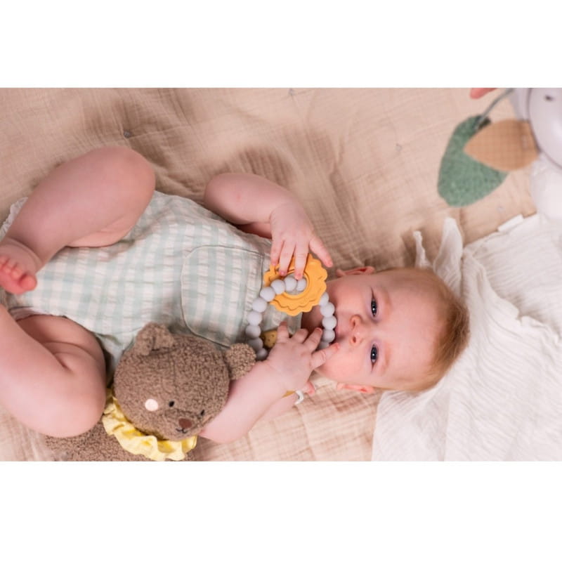 - Silikonowy gryzak – łatwy do chwytania, z dodatkowymi strukturami