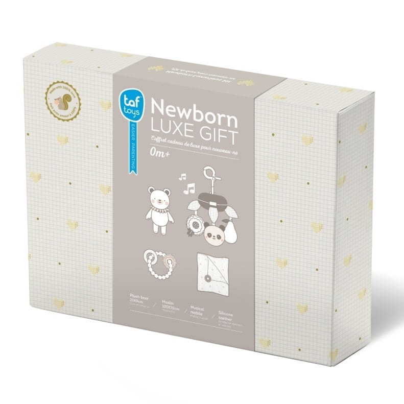 Taf Toys Luxury Newborn Kit to wyjątkowy zestaw zapakowany w eleganckie, luksusowe pudełko, który łączy estetykę z funkcjonalnością. Z