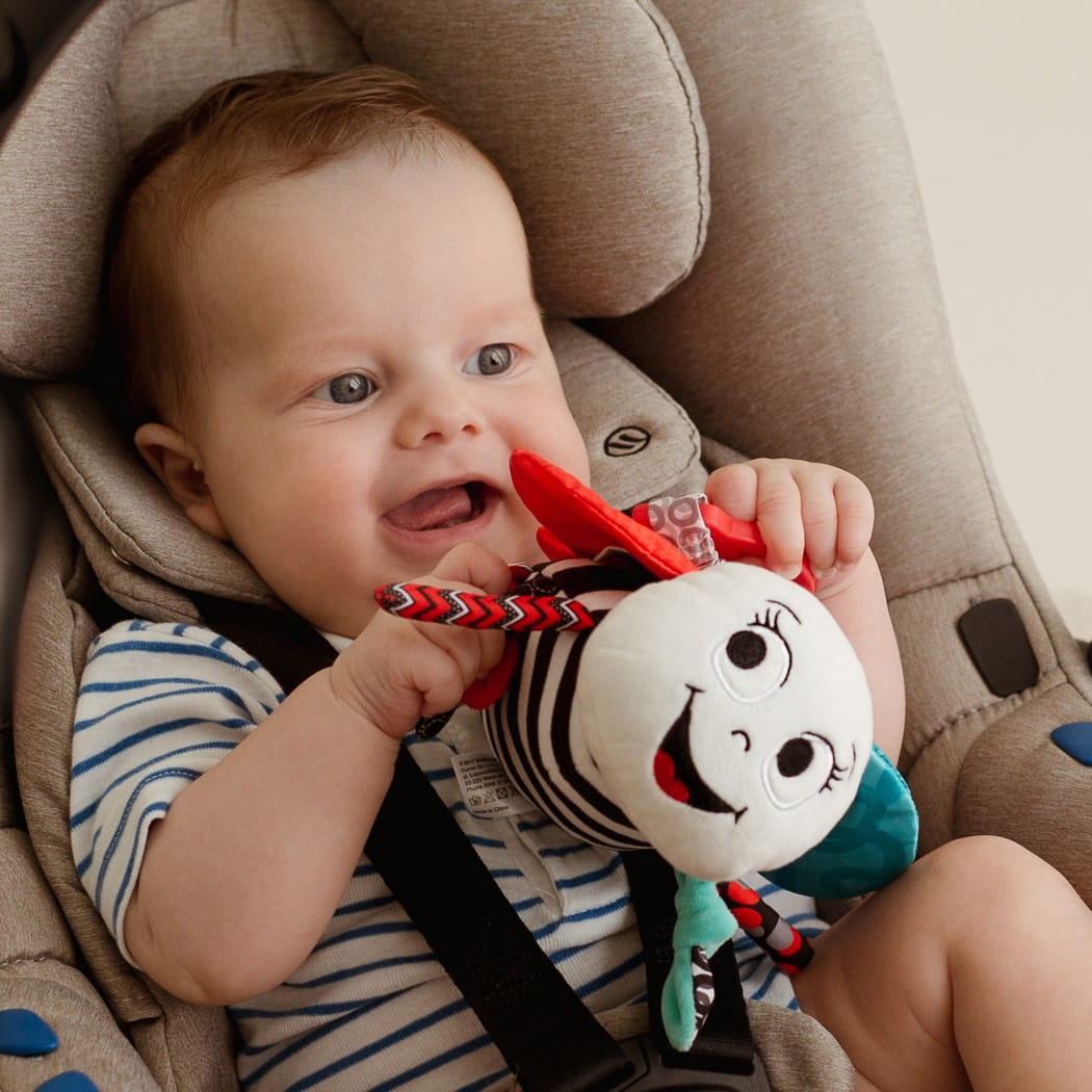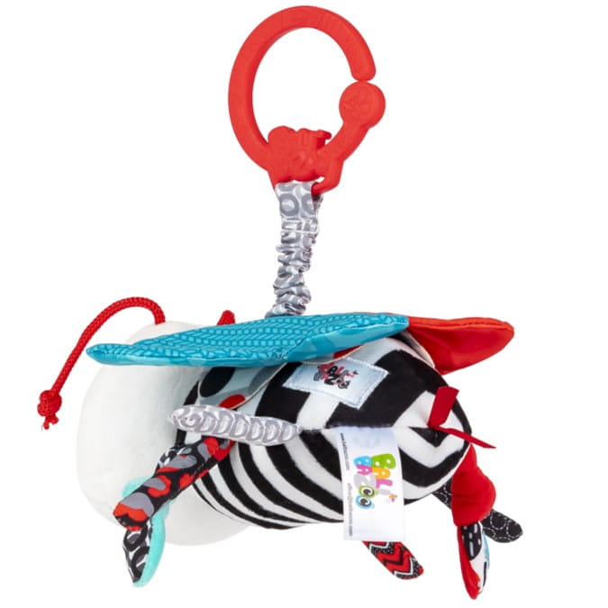 Praktyczna zawieszka pozwoli przymocować zabawkę do szczebelka łóżeczka lub uchwytu wózka czy nosidełka, aby mogła towarzyszyć maluchowi w każdej sytuacji.