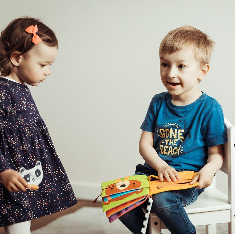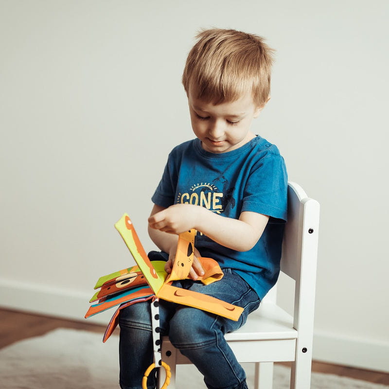 Niezwykle miękka, materiałowa książeczka sensoryczna z elementami puzzli od Mom's care została stworzona z myślą o dzieciach od 8 miesiąca życia . To właśnie w tym okresie życia dziecka doskonale rozpoznaje już kolory, dotyka i łapie przedmioty.