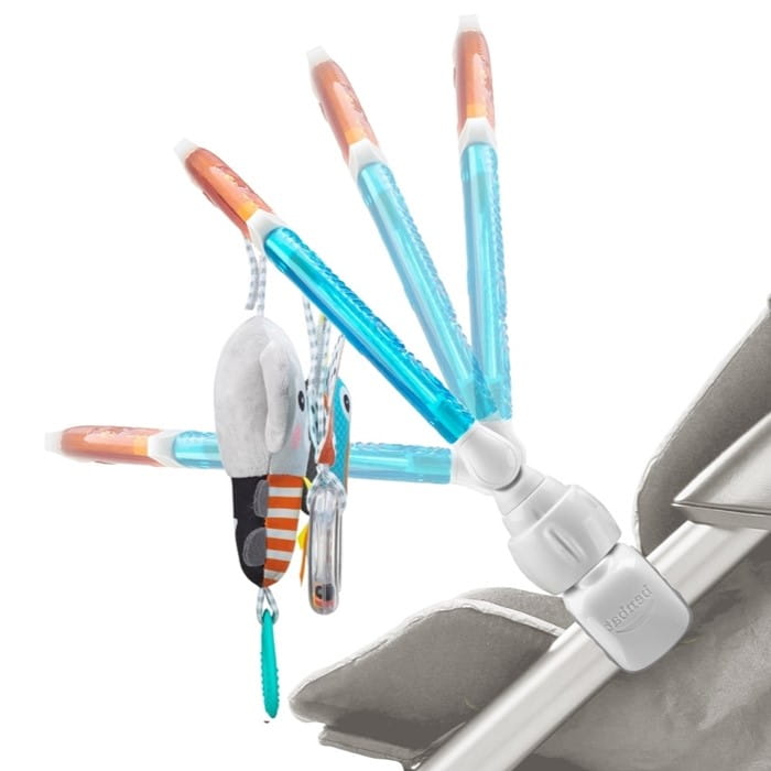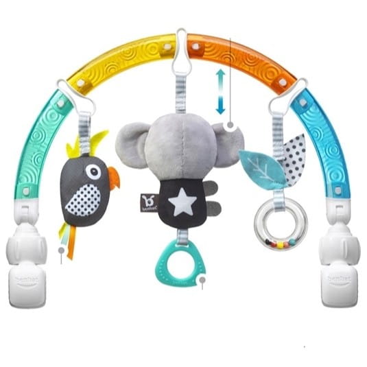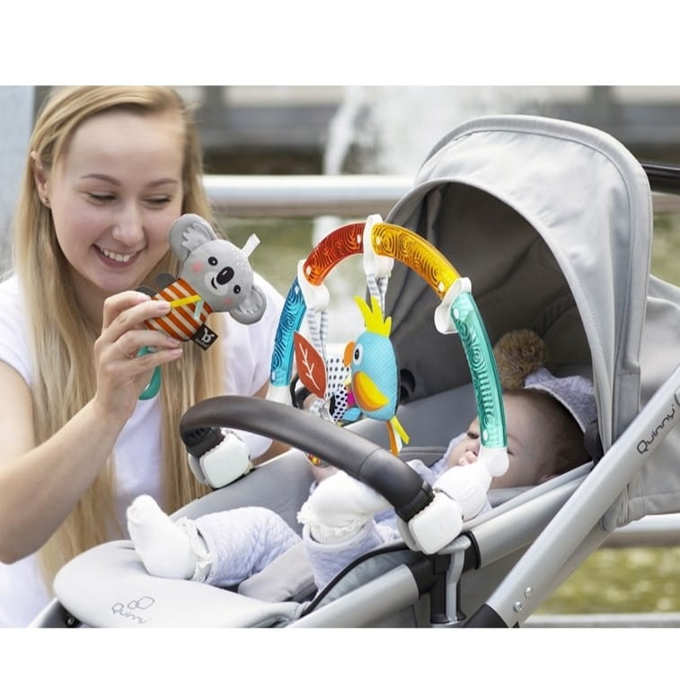 Pałąk wyposażony jest w pełną gamę zabawek rozwojowych, każda z własnym niepowtarzalnym wyglądem i efektem. Ciekawe kolory, różne struktury materiału, szeleszczące elementy rozwiną u dziecka najważniejsze w pierwszych etapach życia zmysły oraz koordynację wzrokowo ruchową.