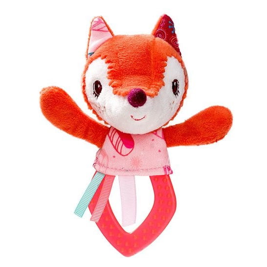 Grzechotka z gryzakiem i szeleszczącą folią Lisiczka Alice belgijskiej marki Lilliputiens