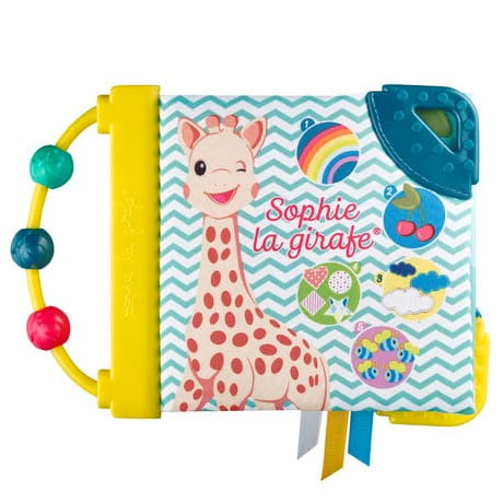 Zestaw prezentowy Gryzak Żyrafa Sophie z książeczką i grzechotką. Gryzak Żyrafa Sophie to uwielbiany przez dzieci na całym świecie kauczukowy gryzak. Żyrafka ma 18 cm wysokości, jest koloru złamanej bieli, z brązowymi cętkami, ma 4 nogi, parę uszu i parę rogów. Jej kształty są stworzone do małych rączek i do gryzienia. Żyrafka Sophie ma w środku piszczałkę. W zestawie dodatkowo znajduje się miękka książeczka z gryzakiem i grzechotka.