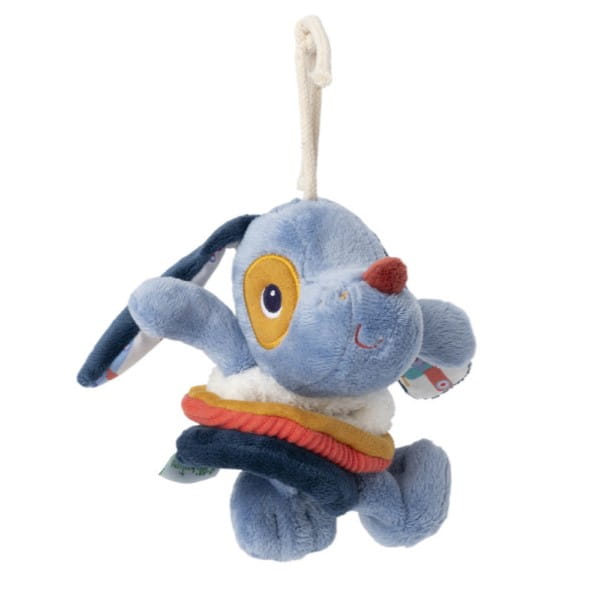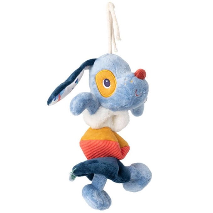 Aktywizująca i wywołująca uśmiech na buzi zabawka dla niemowląt. Miękka przytulanka ma postać uroczego Pieska Julesa, którego tułów po naciągnięciu wibruje. Jules ma dłuższe nogi i łapki, bardzo długie uszy, okrągły nosek i łatkę na oku. Można go zawiesić za pomocą sznurka na pałąku wózka lub fotelika samochodowego.