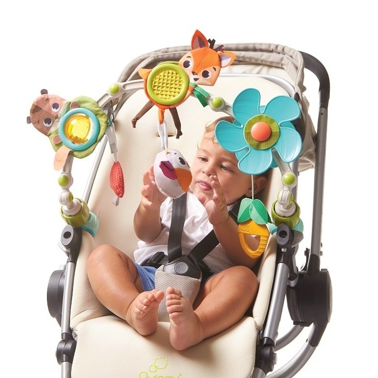 Dołączony do fotelika, leżaczka czy wózka urozmaica czas maluchowi. 4 melodie, uśmiechające się postacie, grzechotka oraz różnorodność materiałów stymuluje zmysł wzroku, słuchu i dotyku.