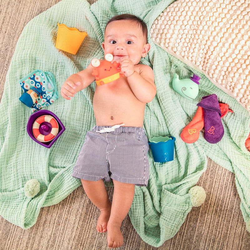 Zestaw prezentowy zabawek do kąpieli dla niemowląt marki B.Toys.