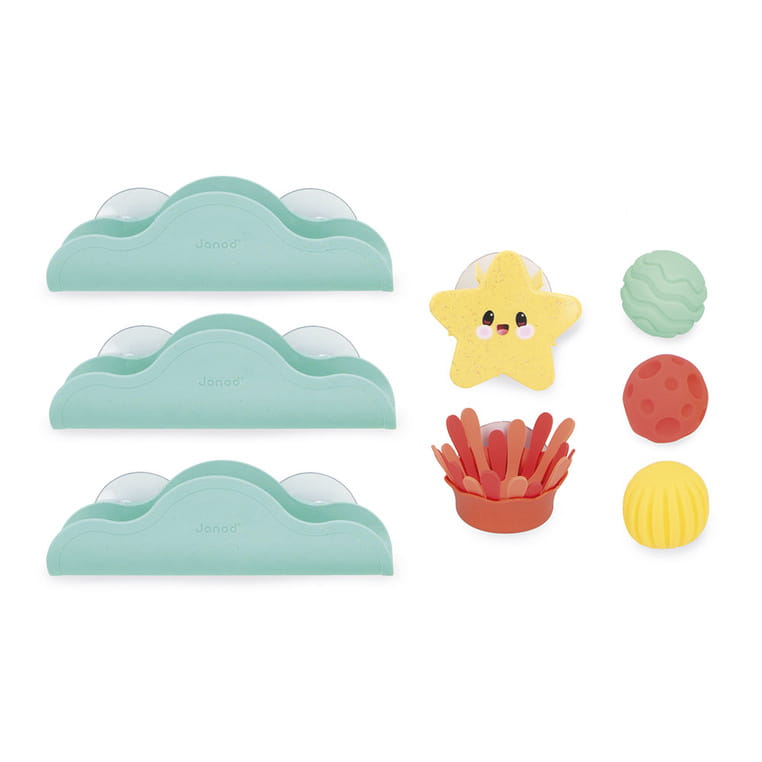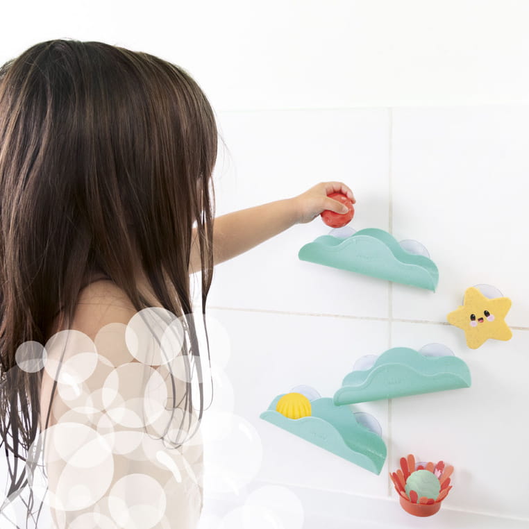 Tor można zamocować do wanny lub płytek w łazience w dowolnej konfiguracji. To doskonały sposób na umilenie maluszkowi czasu spędzanego w wannie.
