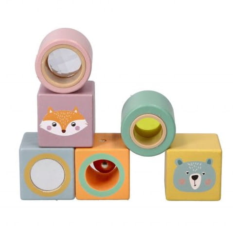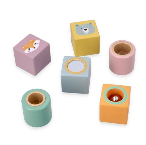 Zestaw składa się z 4 sześciennych klocków i 2 walców.