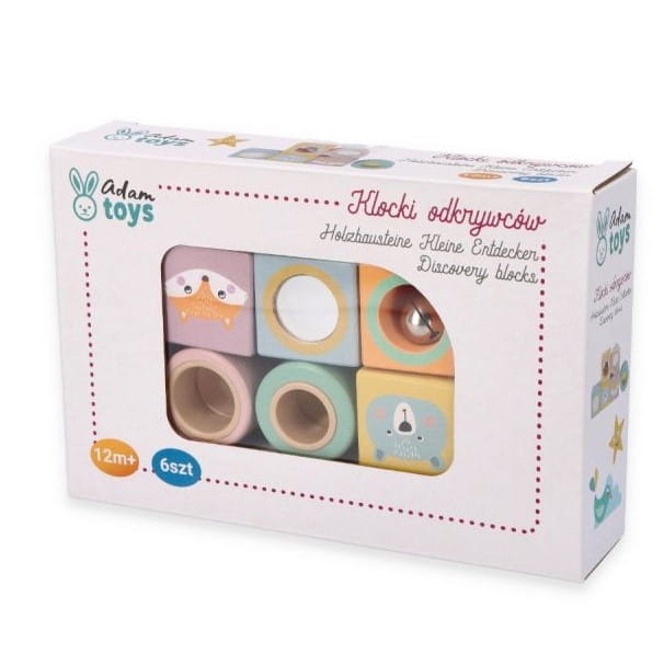 Drewniane klocki dla małych odkrywców marki Adam Toys.