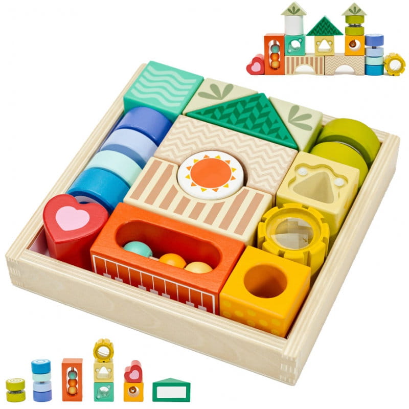 Klocki to klasyczne zabawki skutecznie rozwijające intelekt dziecka. Zestaw klocków sensorycznych wspiera zabawę konstrukcyją, dążenie do celu, kreatywność, rozwiązywanie problemów.