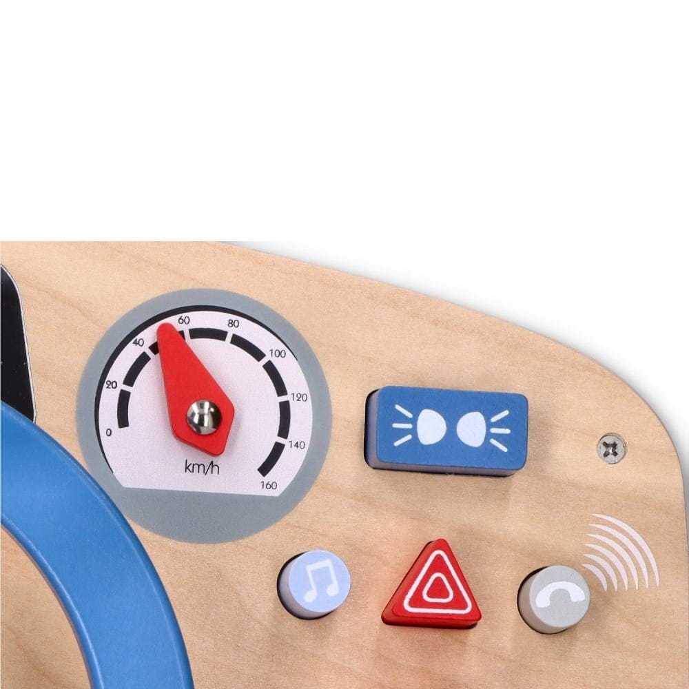 Kierownica z panelem sterowania. Zabawka zawiera wiele aktywizujących malucha elementów: