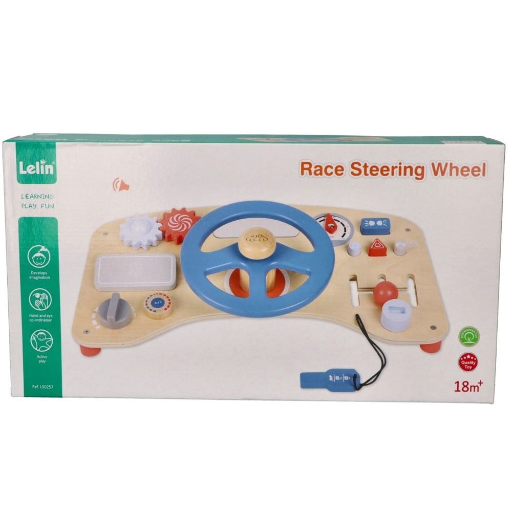 Drewniana kierownica dla dzieci marki Lelin.