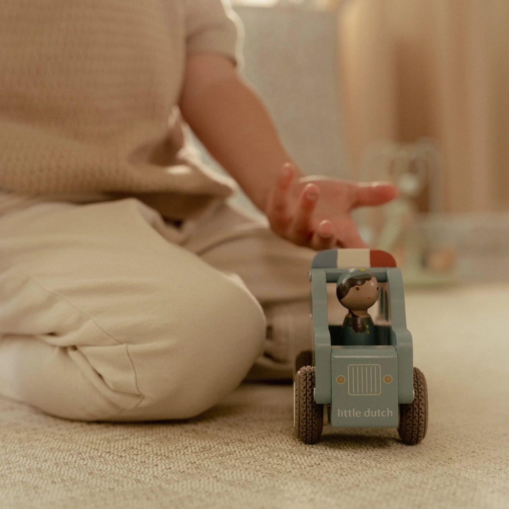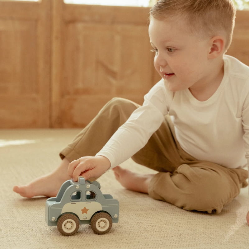 Drewniane auto policyjne marki Little Dutch.