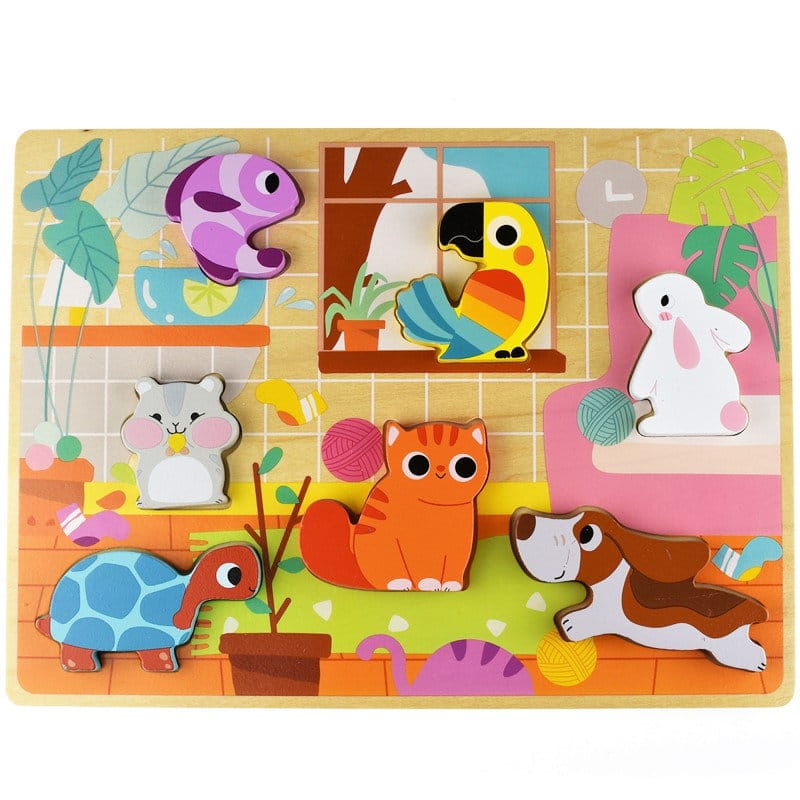Drewniana układanka Zwierzątka domowe marki Tooky Toy.