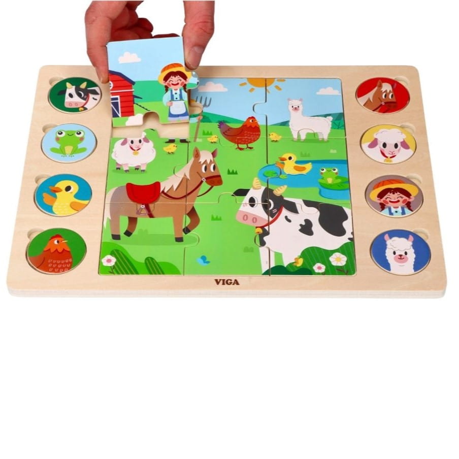Drewniana układanka 2w1 Farma marki Viga Toys.