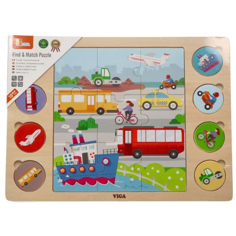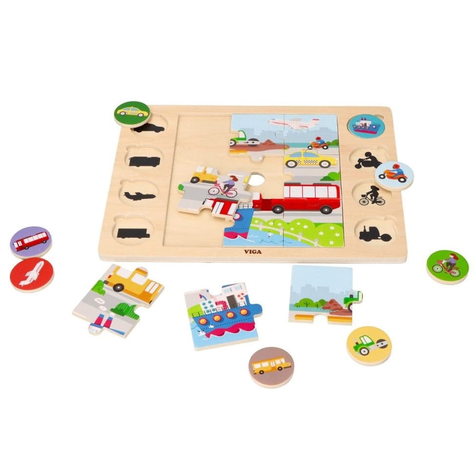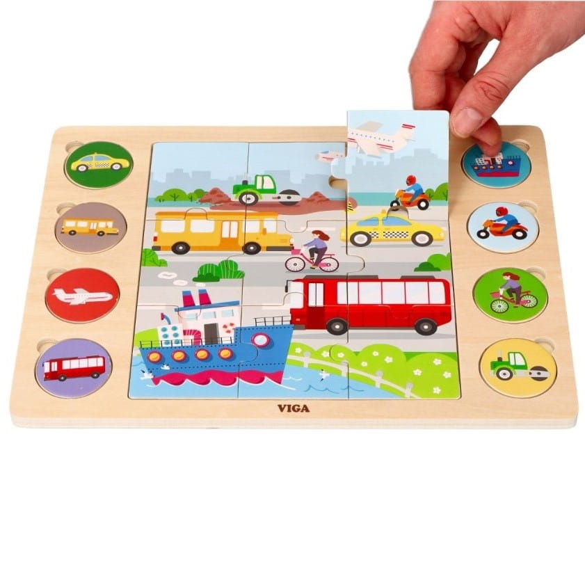 Drewniana układanka 2w1 Pojazdy marki Viga Toys.