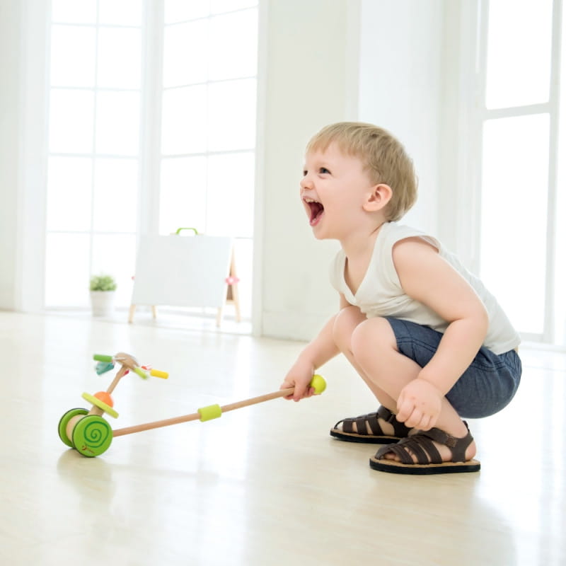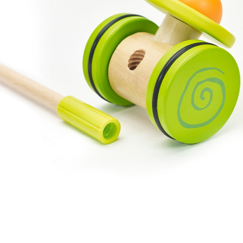 Produkt przeznaczony dla dzieci, które właśnie uczą się stawiać pierwsze kroki. Kolorowy pchacz na pewno zachęci maluszka do doskonalenia techniki chodzenia i umili każdy rodzinny spacer.