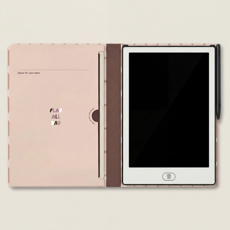 Książka z tabletem LCD i kartami pracy, która krok po kroku uczy rysować, pisać i ćwiczyć motorykę – w domu i w podróży.