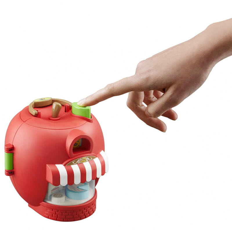 W dużym oknie cukierni kręci się karuzela pełna pysznych smakołyków. Naciśnij duży zielony przycisk na górze jabłuszka, aby kręciła się dookoła, zachęcając klientów do wejścia do środka.