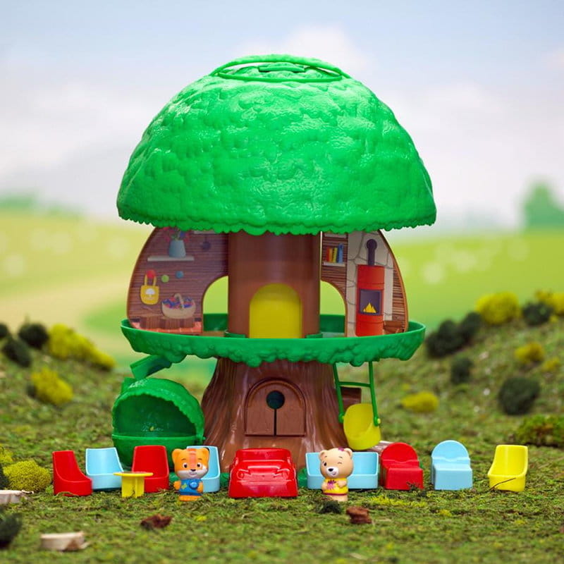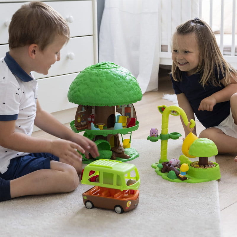 - Przenośny plac zabaw w kształcie drzewa, w którym mieszkają sympatyczne zwierzątka.